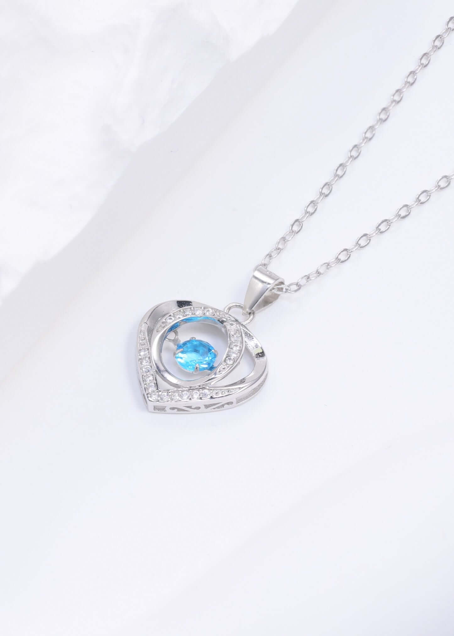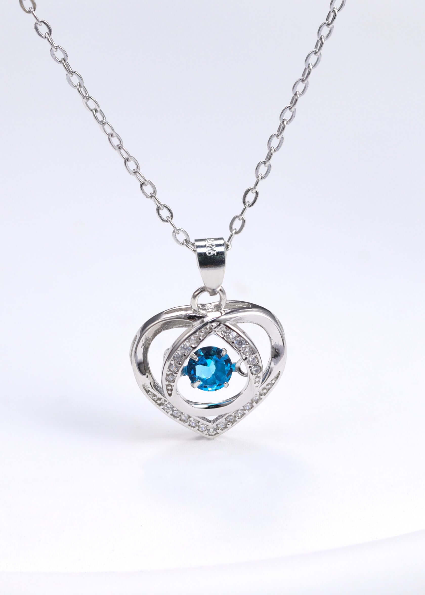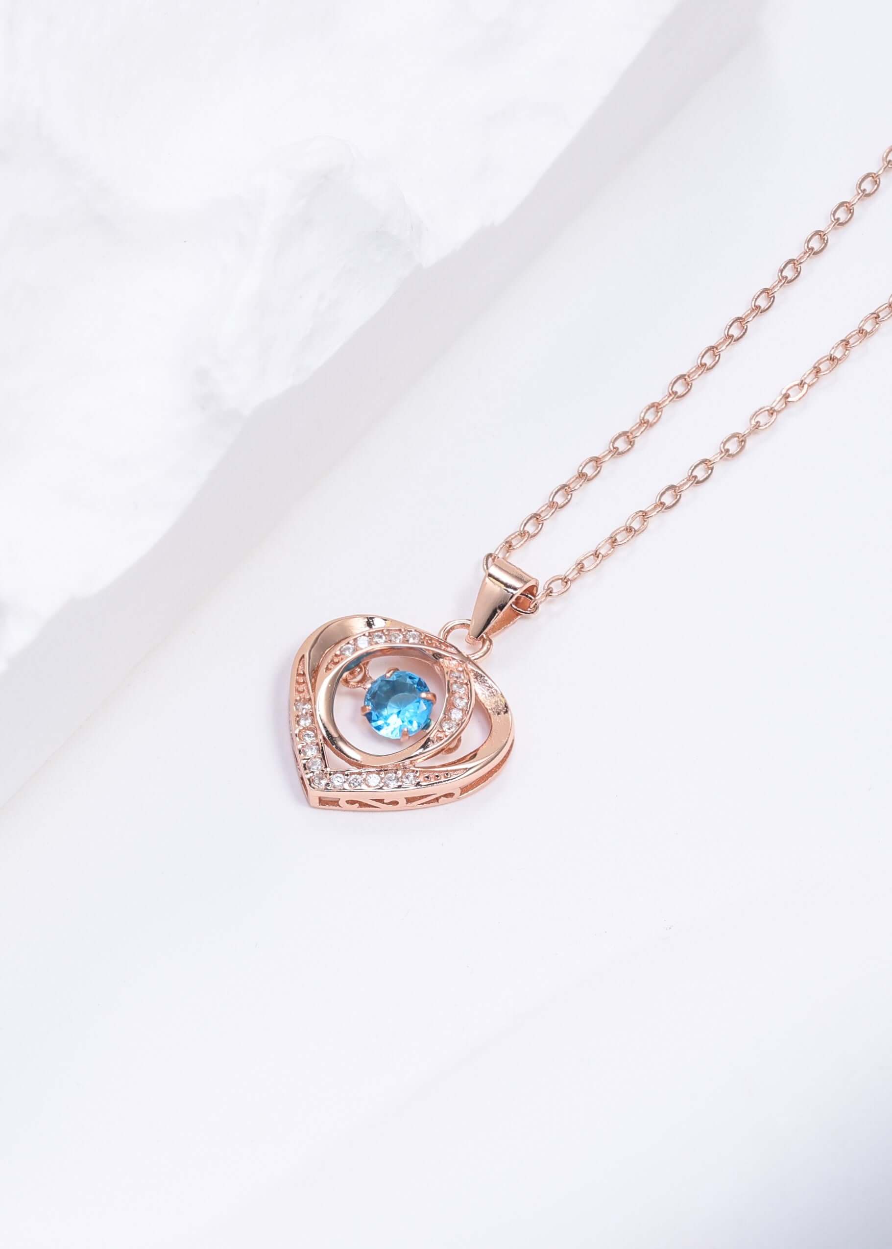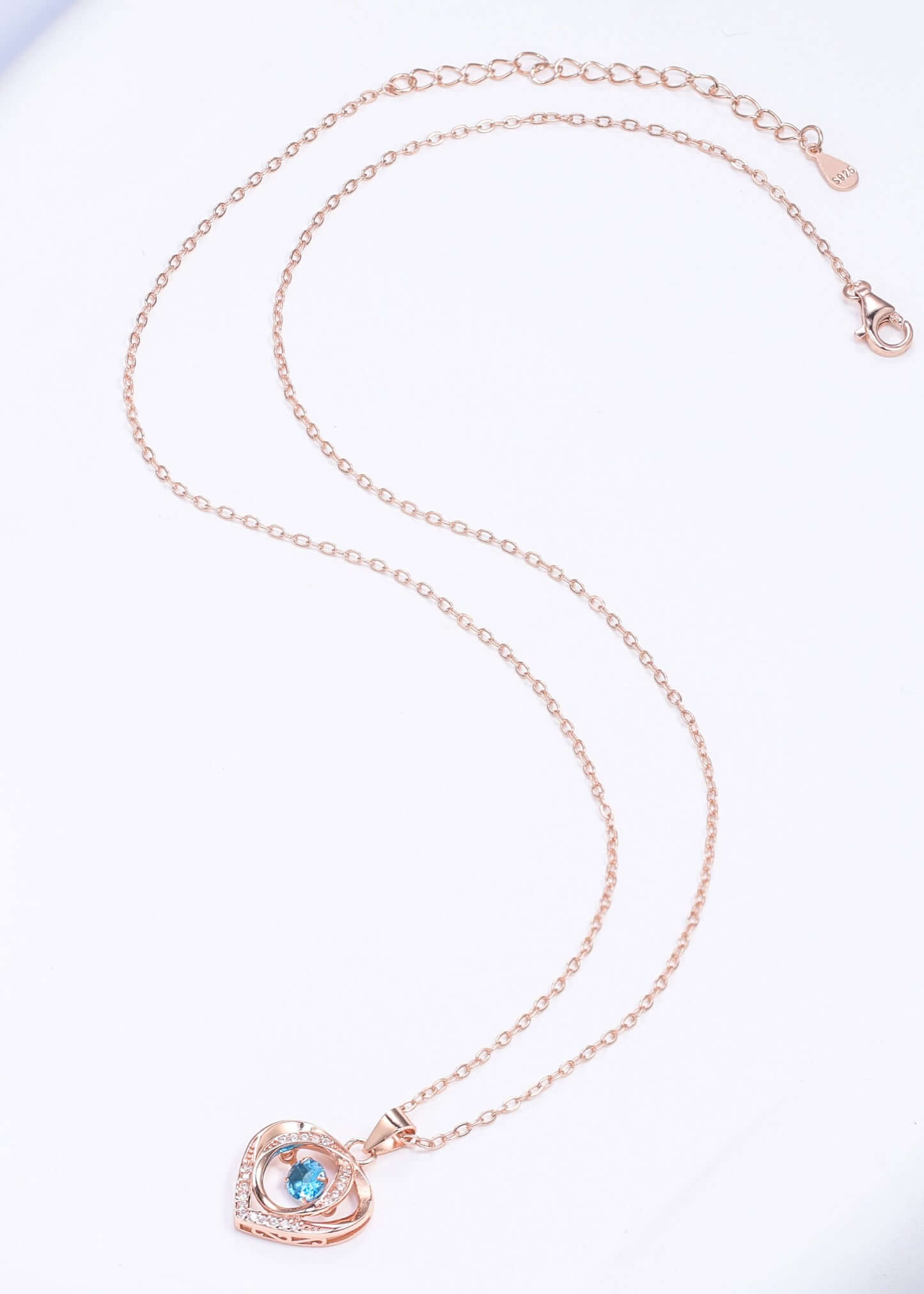 Discover the charm of our sterling silver chain, available in both silver and rose gold finishes. Featuring a heart pendant with a small blue stone at its center, this elegant piece adds a touch of love and sophistication to any outfit, perfect for both everyday wear and special occasions.